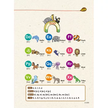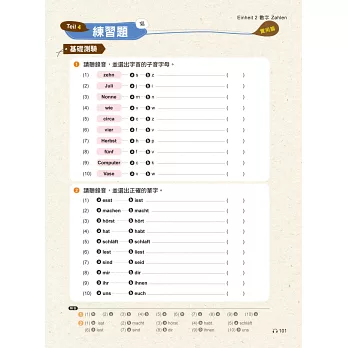 1,自修課本:本書由二個德國語言教學博士親自撰寫及審訂,內容完全符合德語學習者需求。從基礎字母A-Z、變母音,到實用字彙及基礎會話,聽、說、讀、寫與發音一次搞定。且每一章都提供練習題,讓讀者邊學邊演練。