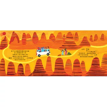 隨著繪本中熱情奔放的畫面,讓我們跟著故事主人翁一同展開一趟可以看見世界最美風景的旅程吧!請上車!──兒童文學工作者 李貞慧
