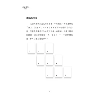 夜深人靜,當你進入夢鄉時,宇宙、潛意識心靈及你的守護天使所給予的指引、解答以及重要的提醒卻不曾停歇過。本套牌卡將協助你解讀與處理夢境的訊息,讓你能更清楚地掌握自己的生命軌跡,經驗更深層的療癒,並幫助你做出決定。