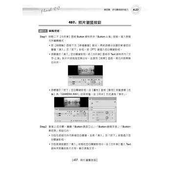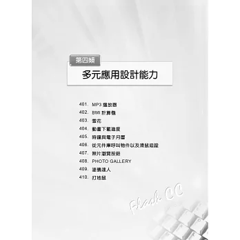 本書的重點,除了幫助讀者順利的學習之外,對於Flash CC各項功能的應用不只能知其然,更能知其所以然。尤其書中的Note( )往往是點出您學習的弱點,突破學習障礙的關鍵,使您能將學得的技巧活用於生活中,而達到學以致用的目的。希望本會的用心能帶給您一個愉快且輕鬆的學習心境,而且能真正了解如何將之運用在生活或工作當中,發揮所學成為專業的設計人才。