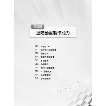 有鑑於此,本會為了建立使用者的學習信心和提高學習的成效,特聘請吳玄玉老師親自解題並精心規劃撰寫『TQC+ Flash動畫設計認證指南解題秘笈-Flash CC』,期能以最完整最詳細的說明,一步一步引導您涉獵整個學習過程,而不致無所適從。