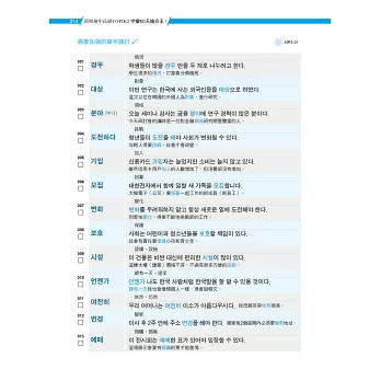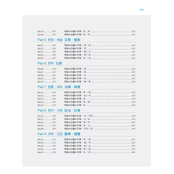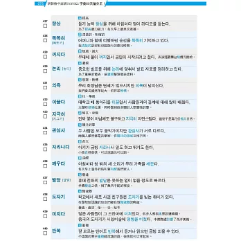 我的研究主題是韓國現代史,必須閱讀大量學術韓文。學術韓文不僅複雜難解,更常出現因文化隔閡而不易掌握的單字,幸而有裴老師的指導使我能克服上述障礙。這本韓檢中高級教材,以12個主題分類較為進階的單字,輔以道地例句,對韓語能力的提升相當有幫助。基於自身的學習經驗,極力推薦。——臺灣大學社會學系博士生/Kyle