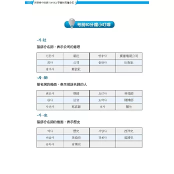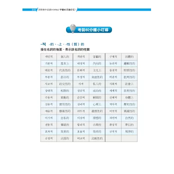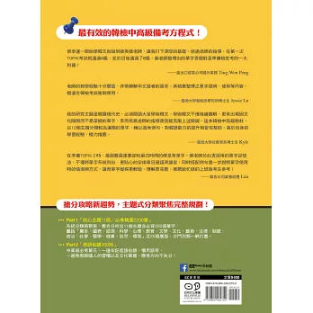 老師的教學經驗十分豐富,非常瞭解中文讀者的需求。其精要整理之單字說明、使用等內容,極適合韓檢考前衝刺使用。 ——臺灣大學藝術史研究所博士生/Jessie Lu