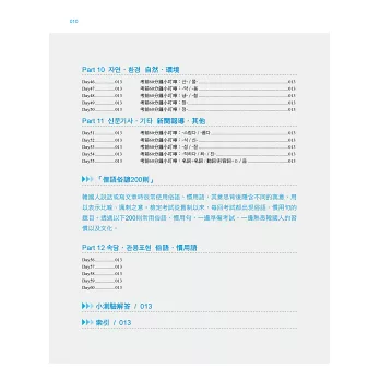 ●Part2「俚語俗諺200則」:中高級必考單元,一邊牢記俚語俗諺、慣用語等,一邊熟悉韓國人的習慣以及文化掌握,應考方向不失分!