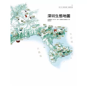 香港與深圳雖然都是現代化的都市,但同時擁有山嶺、溪流、湖泊、森林、田野、古村、海洋、島嶼和中國最美的海岸線;多樣的生境不僅展現了多樣的景象,也為多樣的生命提供了棲息地。深港兩地飛翔著全中國1 / 5的鳥類物種,奔走著近10%的哺乳動物物種和20%的爬行動物物種。兩地的海域約佔南中國海的1 / 5000,生命物種卻超過20%⋯⋯