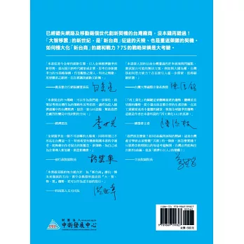 「本書深入剖析目前台灣遭遇的許多困境與問題點,嘗試提出可能的解決方案。例如與大國為鄰,台灣該如何借力使力?在在能引人進一步探索,值得細細研讀。」——台灣大學國際企業系教授 陳厚銘