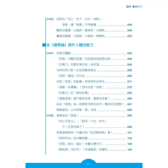 藉由物理學的理論基礎,簡單以「平衡」陰陽能量的角度,試著將這難懂的千年語言,轉換成現代容易理解的養生智慧。非常感謝這位默默付出的幕後功臣,有了他的加入,方能順利完成這本兼具理論與實用的健康書籍。