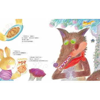 1.跟孩子聊聊「大野狼」這個角色吧!大野狼為什麼沒吃到小貓咪,還把自己弄得慘兮兮?大野狼是如何收起獸性,變得溫和、容易親近?童話中的好「惡」的大野狼與本書好餓好餓的大野狼又有什麼不同?