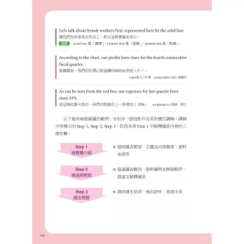 ‧不論是哪種圖表,遵守3步驟來解說,台下聽眾一目了然。