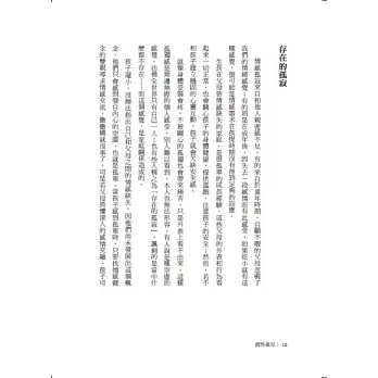 一個壓抑、封閉情感的家庭,親子關係的情感疏離,影響的是一生與他人情感連結的能力。在內心深處也始終難以擺脫「孤兒」感受,不知道究竟自己歸屬於何?自己又與誰有所關係?如果這是你的處境,相信這一本書是你需要的。──蘇絢慧(諮商心理師/心理叢書作家)