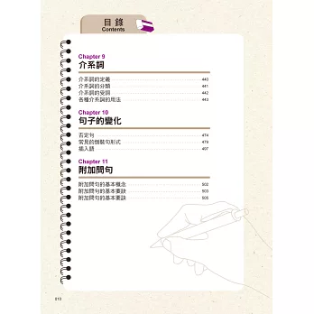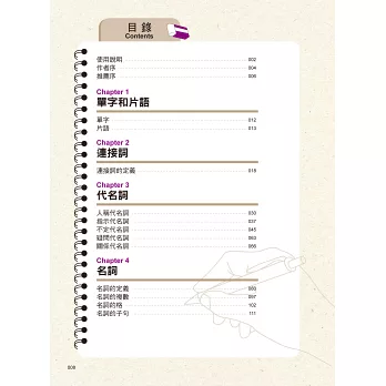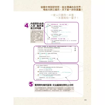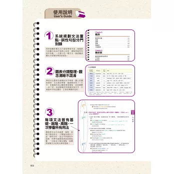 一翻開書直接被艱澀的文法嚇到倒退三步,喪失學習的慾望?無需擔心!本書內容設計以淺顯的基本觀念開頭,慢慢帶入不同程度的文法重點,由淺入深地學習,不但能讓觀念更清晰,更能提升讀者的學習意願。