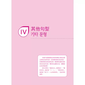此篇作者群嚴選出39個TOPIKI考前必讀之其他文法與句型,如各種型態的否定用法、各種時態的冠形詞用法等。最精華收錄的39個其他句型及文法,幫您抓出重點文法,備戰檢定考試零疏漏!