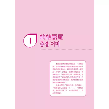 此篇收錄13個韓語終結語尾。「終結語尾」具有傳達給聽者話語即將結束的功能,而在韓語中,「時態」與「尊卑待遇」也會使用「終結語尾」來表現。只要詳讀這13個終結語尾,應試TOPIKI面對語尾問題綽綽有餘!