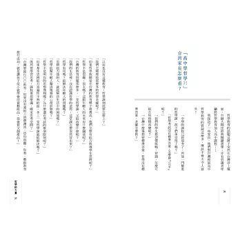 看完六位法國高中哲學老師與八位已上完哲學課的青年現身說法,作者也將眼光轉回台灣,採訪學者、民間哲學教育推動者與高中老師,整理出近年來哲學教育推廣的脈絡,並從本地的角度析辯哲學教育的前景。