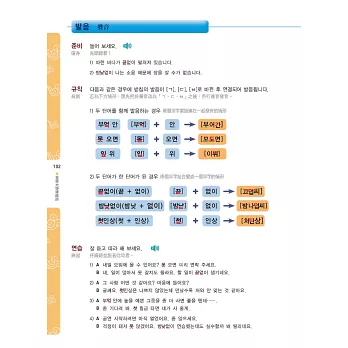複雜的韓語發音系統,總是讓韓語學習者「每學必忘」。首爾大學教材的最大優點之一,即是每堂課皆有「發音」單元,讓你不必囫圇吞棗地一次記完所有發音,可以循序漸進透過「暖身」→「規則」→「練習」3個步驟來練習每一課的發音主題。
