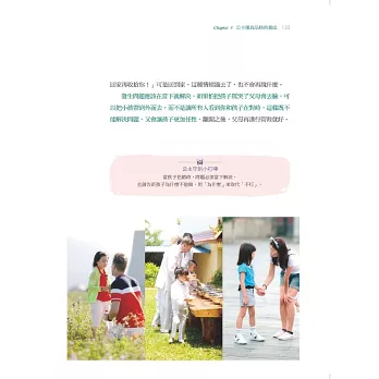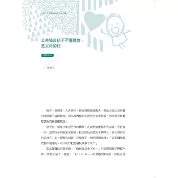 我的觀察心得是,許多父母都忽視了培養孩子的同理心,所以孩子總是以自我為中心,這樣的人不受歡迎,長大後成了心理學家口中的「巨嬰」──外表像大人,但內心仍是個嬰兒。所以,夏天爸爸在這部分的教育方法,非常值得父母們學習參考。