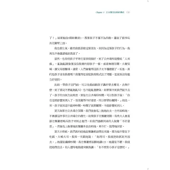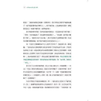很多父母覺得,陪伴孩子就是要和孩子一起玩玩具,或一起看電視,沒有這些媒介,就失去親子互動的橋梁而手足無措。夏克立的做法說明了另一種狀態:只要我跟孩子在一起就好。我覺得這才是最成功的親子教育──不需要任何工具,兩個人就能愉快相處。這代表這段親子關係的本質很好。