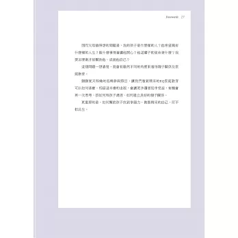 每個父母都希望自己的孩子能快樂成功,卻不一定知道該做些什麼,才能確保孩子未來真的快樂成功。而心理學上研究發現,EQ影響孩子的一生。EQ高,不但自己容易快樂,對學習、人際關係,以及未來工作成就都有著關鍵影響力。我自己從一九九六年開始研究EQ,也做了多年的兒童EQ教育,平時不論在電視節目上或大型演講中,我一直提醒大家,在家庭教育中,父母最重要的角色是孩子的「EQ教練」,幫助孩子培養EQ能力,例如自信、同理心、憤怒管理能力、自制力、衝突管理能力等。