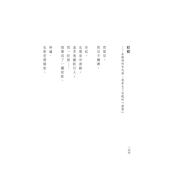 佛在梵文的原意是覺者,是超越生命的個體,卻在詩中被荒謬地扭轉為某種俗世的職業;渡化眾生也不過是工作,帶著尋常的厭膩、虛矯和無奈:我不知道能給什麼/甚至也不想得到/我只想保存自己的淚水/保存到工作結束。