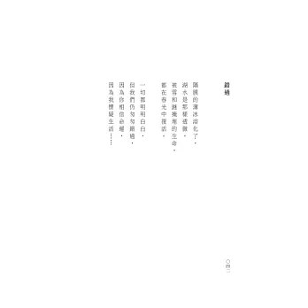 顧城的詩句乾淨,口語地像熟識的友人站在眼前對你訴說,但那親密中帶著絕望,那故事令你斷盡肝腸:一切都明明白白/但我們仍匆匆錯過/因為你相信命運/因為我懷疑生活〈錯過〉。真正失之交臂的當然不會是命運和生活,而是一人寧願相信,一人始終懷疑──或許在某個層面上他們是一樣的,都來自內發的虔誠,可相信是因為接受,而懷疑則是拒斥:是有世界/有一面能出入的鏡子/你從這邊走向那邊/你避開了我的一生〈我承認〉。