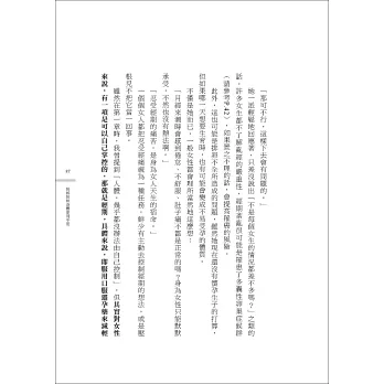 女性與男性不同,「孕育下一代」是天生就被賦予的能力,所以在某個年紀之後,就要承受「要不要結婚、要不要懷孕、要不要生產」的壓力,加上女性雜誌與網路媒體的渲染:「女人要這樣做,才能吸引男性」「女人要受男人喜愛,才是幸福!」「生過孩子的女人,人生才完整!」作者在書中逐一抨擊這些「懲罰女人」的錯誤觀念,從此不再「為了取悅別人」變瘦、變漂亮、甚至是假裝高潮、在長輩的催促下懷孕生子,而是真正了解自己的身體、聆聽自己心裡的聲音,自信做出每一個人生中的選擇!