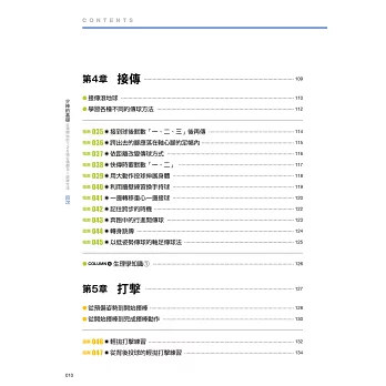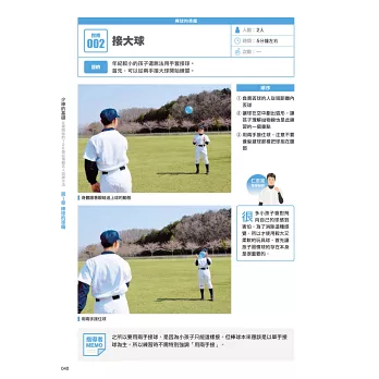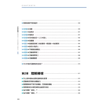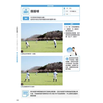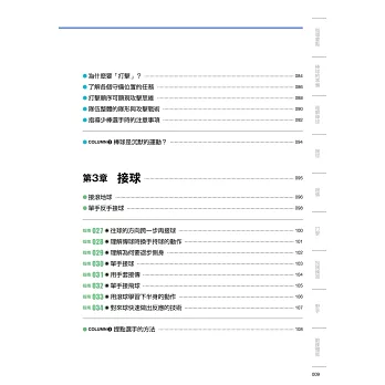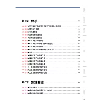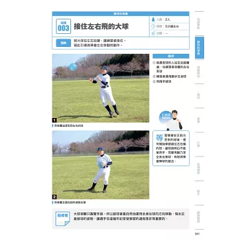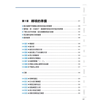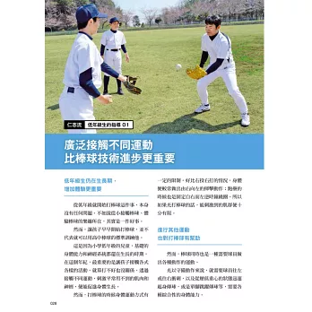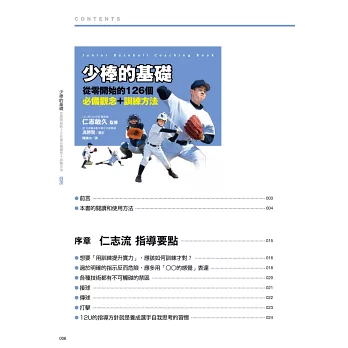 並分為接球、傳球、打擊、投捕搭檔練習、野手的守備技巧、鍛鍊體能等章節,