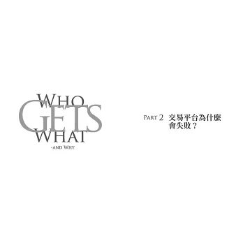 我們每個人置身各式各樣的市場,而且很多市場並無法用金錢決定。了解市場設計,你可以扭轉劣勢,做出更聰明、更有自信的決策,甚至抓住建立交易平台致富的好機會。