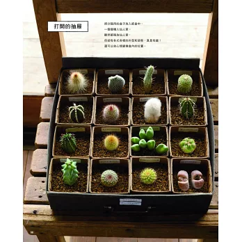 多肉植物的魅力,除了美麗的色彩和外型、容易照顧等特色之外,還有一項特色就是精緻小巧感。將剛長出來還很稚嫩的小仙人掌,擺成和成熟的大仙人掌相同的樣子,便能欣賞到它小巧而成熟的姿態。甚至會讓你不禁讚嘆:「明明那麼小,卻長得好精緻呀!」而能夠更加欣賞精緻小巧多肉的方法,那就是「造景盆栽」了。