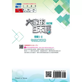 ※本書為《大家的日本語 改訂版》系列之課堂輔助教材,隨書僅附加部分解答。