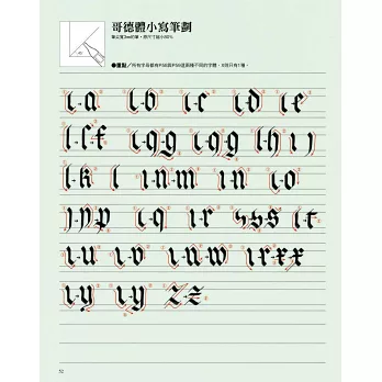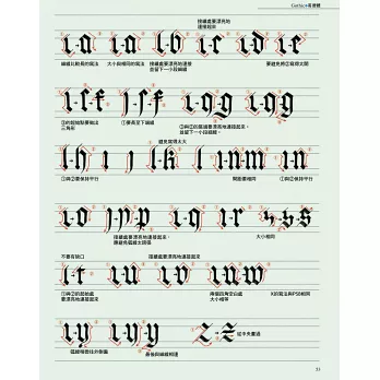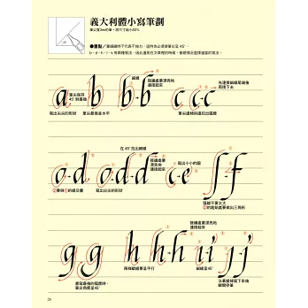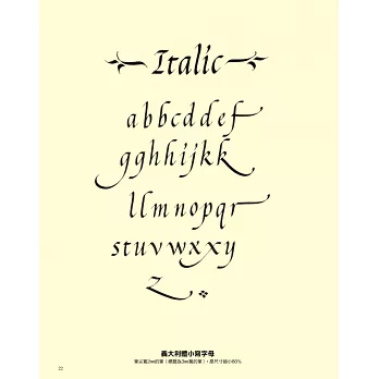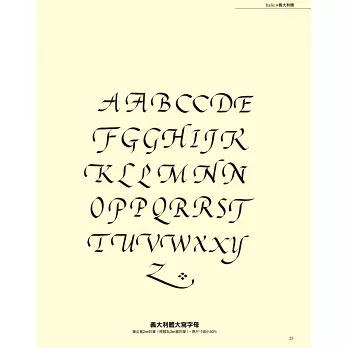 本書介紹詳細義大利體、哥德體、銅板體三種基本的入門字體,