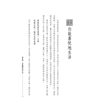 許多人在思考自己,卻愈見迷失。事實上,改變之道絕非痛苦之道,當藉由外境與靈魂及最內在的自己接觸,發現內我更大的意圖是善時,反而的確是欣喜並有力量的。大師歐林猶如一位可佩的心理治療者,娓娓引領人尊愛且愈成為自己,在更大的目的中,自信自發地尊愛別人和世界。《喜悅之道》是心靈療癒成長的最佳陪伴,也是心理治療的典範。