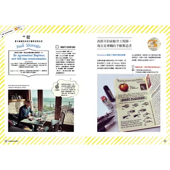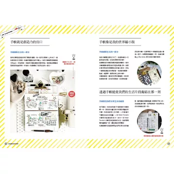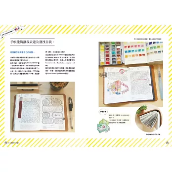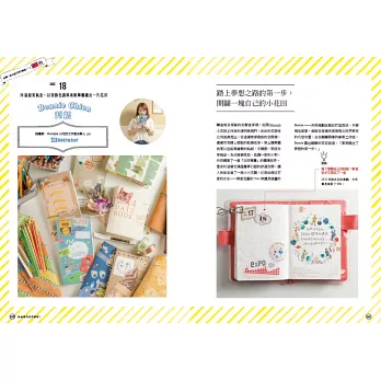 不只臺灣受訪者,此次更獨家採訪來自世界各地的12位手帳達人,有精巧細膩派的西班牙手帳高手,有擅長用食物紀錄生活的日本主婦,還有處處可見童心的美國律師等。讓讀者看到更多元、更豐富的手帳與點子!