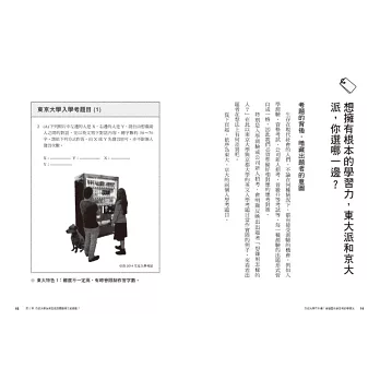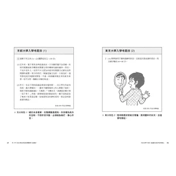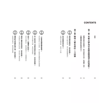 坊間讀書法或學習法琳瑯滿目,常讓有心學習的人面臨選擇困難,因此本書將告訴你如何「選對並善用」最適合自己的學習方式。本書監修顧問群陣容堅強,包括京大大學部、碩博班學生,以及法律、會計、專利、出版等各界京大校友,率先獨家披露並剖析京都大學 vs. 東京大學入學考考題,教你如何看穿出題者的意圖,判斷學校或公司想錄取什麼樣的人,確立正確的準備方向,踏出成功第一步!