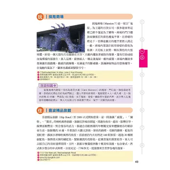 列出清楚的地鐵路線圖,並有按照景點區分的放大版地圖,就算沒到過曼谷,也能透過地圖和指引,輕鬆乘車前往目的地。並且詳細介紹乘車券種類、最新票價、購票、出入站等資訊,讓你搭乘泰國地鐵如同在臺灣搭捷運般簡單。