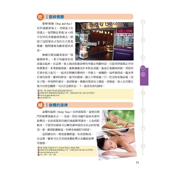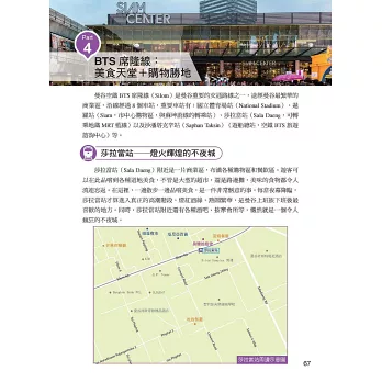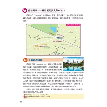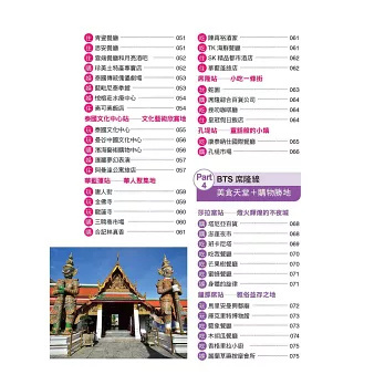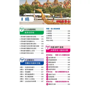逛夜市、水上市集、參拜四面佛、欣賞金佛寺、看精采萬分的人妖秀、享受最舒服的泰式按摩……,跟著書中的地鐵路線規畫,就能快速抵達目的地。