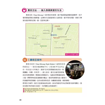 書中多個旅遊小TIP和知識加分區,告訴你搭乘地鐵時的注意事項,逛街購物、尋找食宿和遊玩拍照時,應該遵守的禮儀,以及讓行程加分的好玩祕訣。