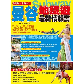 本書介紹曼谷地鐵3條重要路線等,多個路線沿途的旅遊資訊,包含整個曼谷市區,參拜四面佛,逛恰圖恰週末市集、各大購物中心和百貨公司、3D藝術美術館、大皇宮、玉佛寺、各大夜市等,一次玩遍精彩看點。
