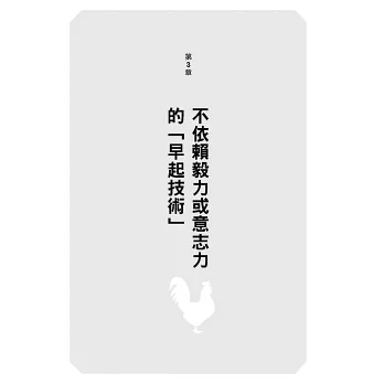 我們雖然想要早起,但這只是手段而非目的,真正的目的是:「想過更充實的生活」、「想過更有效率的生活」、「想要有更豐富的人生」等等,養成理想的生活習慣才是最終的目的。本書將會介紹養成理想的生活習慣所需的早起技術。
