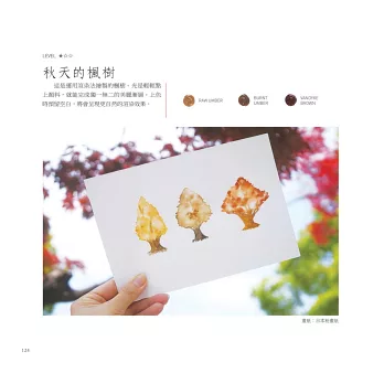 春日的粉紅櫻花,捎來戀愛的氣息,夏日的貝殼海星,帶來消暑的清新沁涼;秋日的火紅楓樹,看見大自然的美麗哀愁;冬日的聖誕,充滿祝福感恩的季節。這本書教的不只是畫出一幅幅水彩圖畫,還有懂得用心體會的生活,每一次的水彩練習都帶來提醒,生命中有這麼多值得細細感受的美麗。