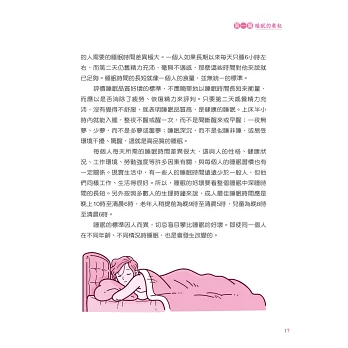 實用性:本書介紹了睡眠與夢的奧秘,從各個不同的角度闡述了飲食、環境、藥物與睡眠健康的關係,並給出了調適健康睡眠的建議;書中並收錄了上百則關於睡眠問題的插畫,幫助讀者更容易理解。