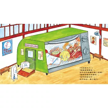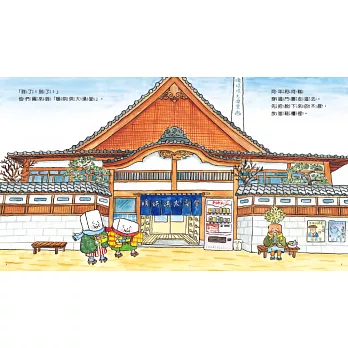 溫馨的小品故事,配上植垣步子讓人感到溫暖的繪圖,巧妙的將各種浴池和食材結合,圖畫裡的文字更是為故事增添了不少趣味性。