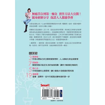 一邊享樂、一邊存錢,真的沒這麼難!在本書中,佑佑以自己的故事和經驗,告訴你,再平凡的背景,也能快樂的存到第一桶金!而且這些方法簡單,保證人人都能學會!