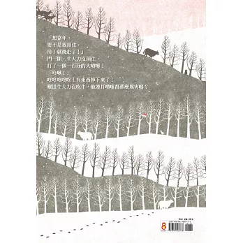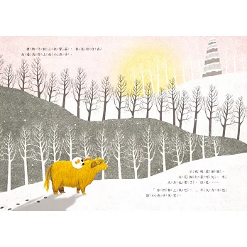 牠說牠會頂房子,風雪再大也不怕!大花貓不信,小鴨子開心的拍拍翅膀:「好啊!好啊!我要看你表演!」沒想到門一開,風一吹,房子沒有搖,反倒是牛大力打了一個大噴嚏!