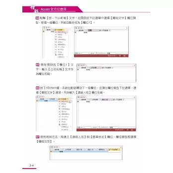 本書課程規劃從資料表、查詢、表單、報表、巨集等物件的建立,精靈、運算式建立器、範本等工具的應用,到最終完整的使用者介面建構,即使是初學者也可以輕鬆製作出專業的管理介面與報表。課程內容特別針對Access入門讀者的學習安排,也非常適合會計財務、資訊管理等辦公室人員學習使用。全書均採用實務應用範例進行課程演練,為讀者詳細講述Access的各種應用與操作技巧,希望透過本書的學習,讓您不只是熟悉軟體的操作,還能快速將所學的知識輕鬆應用於實際工作之中。
