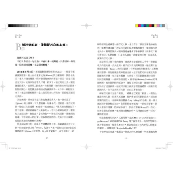 《有一天》訴說72個真實故事,帶你回到創造歷史的開端,引領你掌握改變世界的關鍵。孩子們年紀小卻志氣高,他們如何運用自己的力量,讓世界感動?默默行善的小人物,是什麼樣的契機,讓他們勇敢奉獻無私的愛?發明家如何取得創意靈感,轉變成生活中不可或缺的發明?事業成功的企業家,他們是如何抓住機會,開創自己的康莊大道?