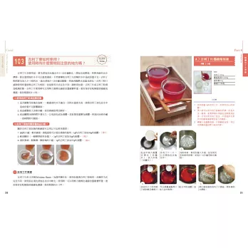 18大單元,從製作甜點的工具、材料、製作過程、餅乾、塔派、泡芙、布丁果凍、果乾與果醬、各式蛋糕、慕斯、蛋糕捲、純素與無麩質蛋糕的製作,到甜點裝飾,至進烤箱烘烤,針對來自各地烘焙新手提出的l80道難題,一一破解,而且舉例實證操作,完整解說,打造堅實的烘焙基礎,讓您的烘焙技術更上一層樓!