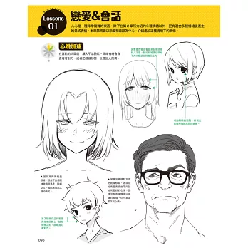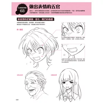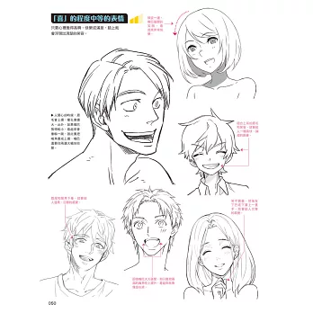 「非常的詳細!光是驚訝的表情也可以分成強中弱,配上圖例表示,其他表情設定也很豐富,值得參考!賣了這本書半年了,在人物表情的描繪上,功力提昇了不少!」-hiyori10