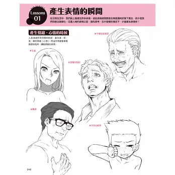 平時我們都是藉由人臉上的表情來判斷他的情緒狀態,因此,當我們畫插畫或漫畫時,若想表現筆下人物的情緒,就必須精確地刻畫人物的表情。生動活潑的表情更勝言語的描述,讓我們直接就能從人物的表情讀取到情緒。而以全世界共通的6 種情緒,「喜」、「怒」、「哀」、「吃驚」、「恐懼」、「厭惡」為首,再把我們平時會接觸到的情感要素加進表情裡,就能畫出各種不同性格的人物角色。藉此表現出人物的性格、感情波動幅度和人生歷練等。