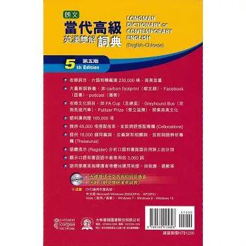 註:英漢雙解第五版全文光碟DVD適用作業系統:中文版Microsoft Windows 2000(SP4)、XP(SP2)、Vista(家用/商業)、Windows 7、Windows 8、Windows 10