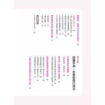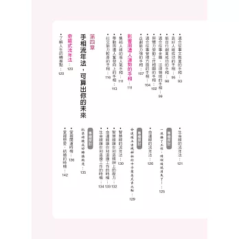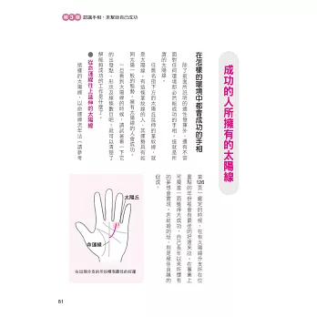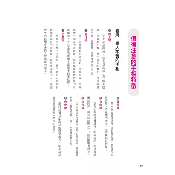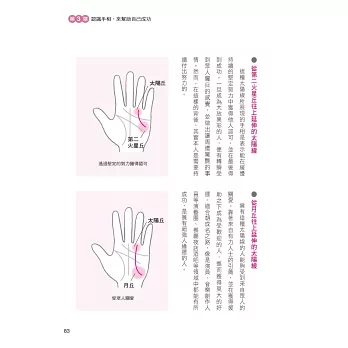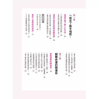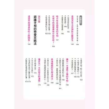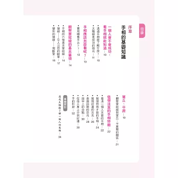 在本書的引導下,透過手相的徵兆,學會趨吉避凶、擅用自我才能,在對的時機裡做出對的選擇,那麼距離成功就不遠了!毫不誇張的說,可說是僅憑手相判斷,就可看出一個人是否能夠馬到成功了呢!